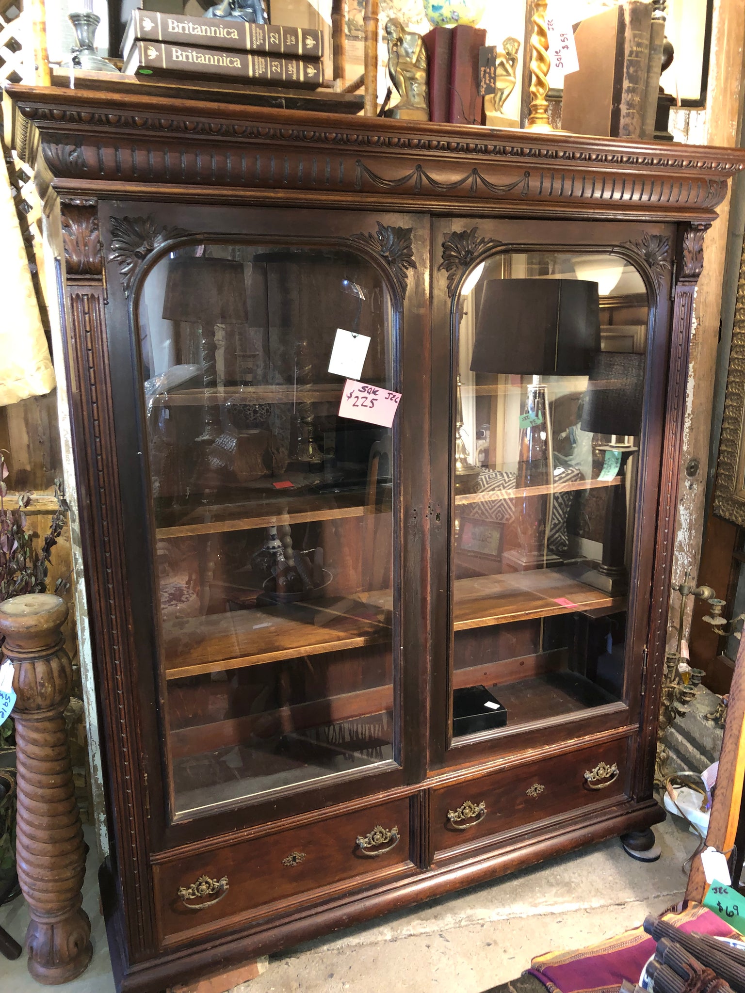 This distinguished Victorian-era bookcase exemplifies period craftsmanship with its original glass panes and sturdy construction. The piece features four pegged, removable bun feet, allowing for flexible placement and easy transport. Designed to accommodate an extensive collection, this antique shelving unit combines functional storage with timeless elegance. A remarkable find for collectors and those seeking authentic period furnishings that enhance any room with historical character and refined style.